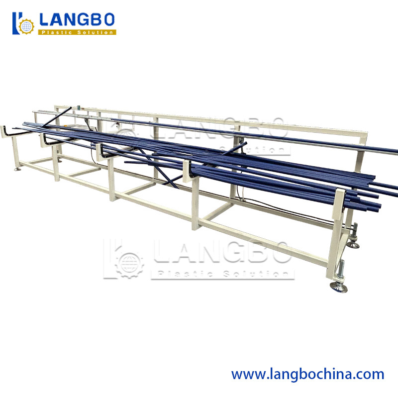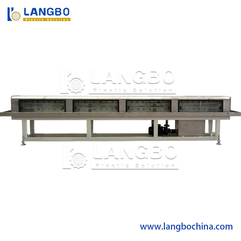 يعتمد خزان المعايرة بالتفريغ الهوائي على هيكل من غرفتين: أجزاء المعايرة والتبريد بالتفريغ الهوائي. يعتمد كل من خزان التفريغ الهوائي وخزان التبريد بالرش على الفولاذ المقاوم للصدأ 304. يضمن نظام التفريغ الهوائي الممتاز القياس الدقيق للأنابيب. قمنا بتمديد خزان التفريغ الهوائي والتبريد إلى 8 أمتار. مع عملية تبريد أطول بكثير، يمكن تبريد أنابيب CPVC بشكل جيد والحصول على سطح أفضل.