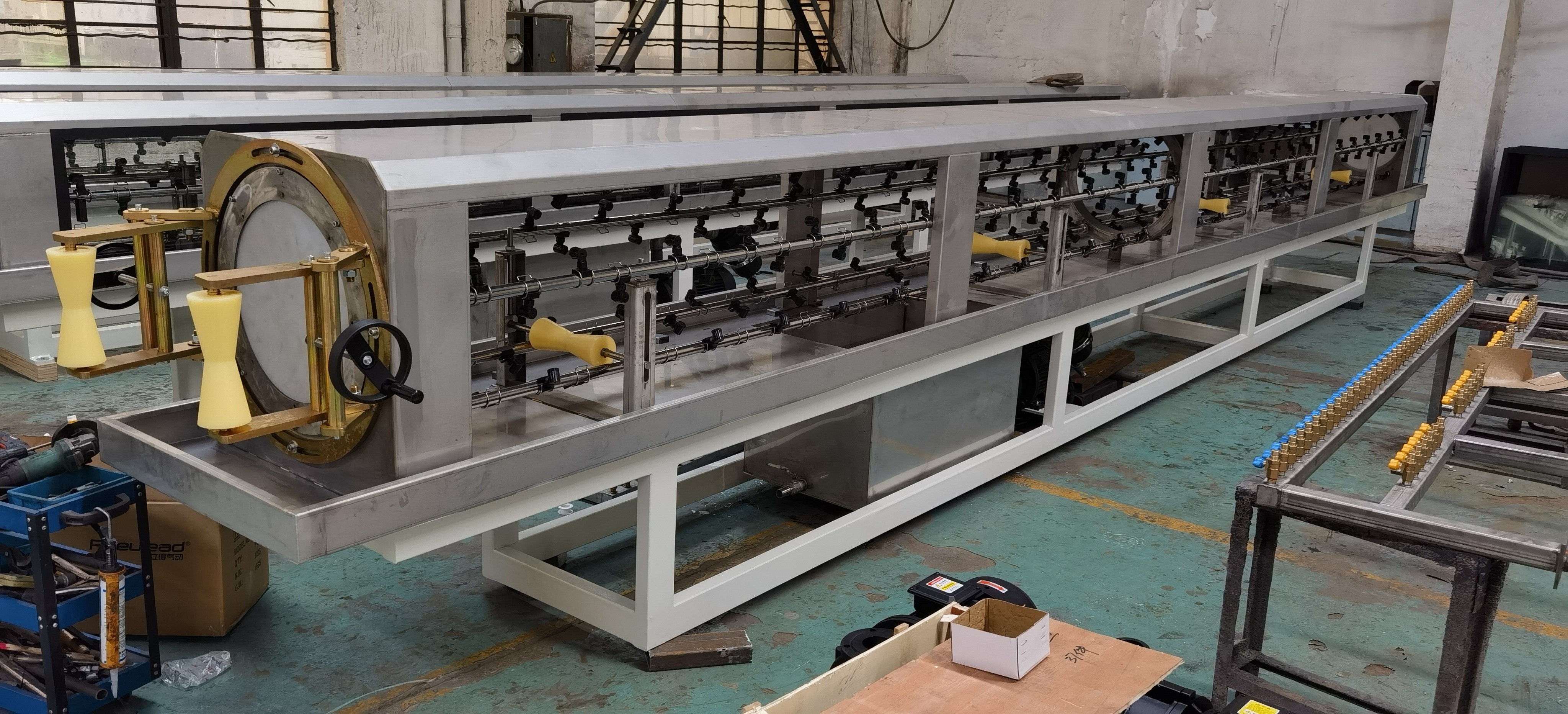 سوف يضمن رأس الطحن من النوع الحلزوني دفع السرعة العالية وتجنب التفكك الحراري للبلاستيك غير المتحركة والحصول على أنابيب عالية الجودة. هناك نظام تحكم في التدفئة داخل القالب،عالية الكفاءة، من السهل التخلص منها. يمكن لمعايرات البرونز أن تجعل الأنابيب يتم معايرتها وتبريدها بسرعة.