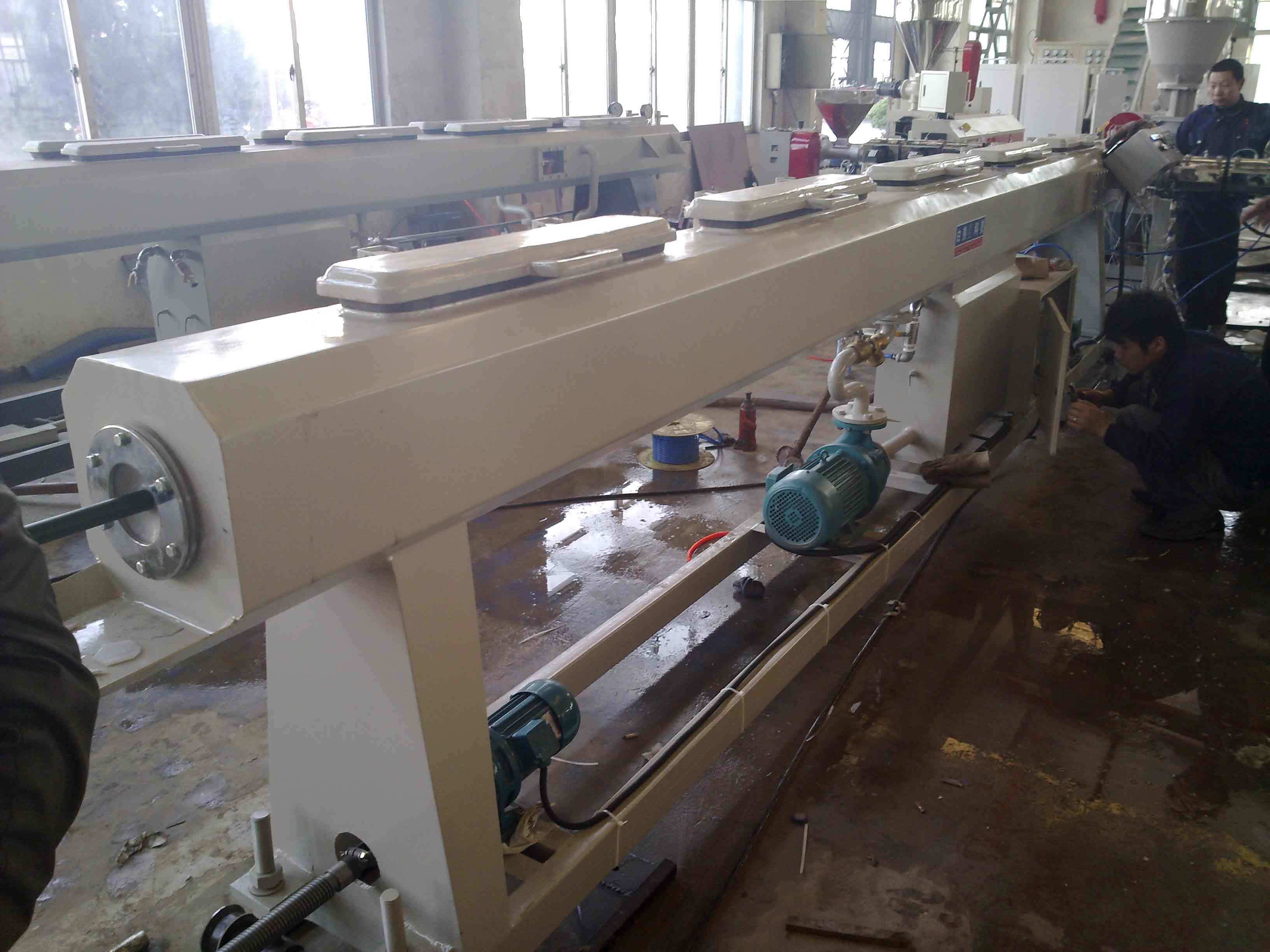يدخل الأنبوب إلى خزان معايرة الفراغ لتثبيت القطر وسمك الجدار.