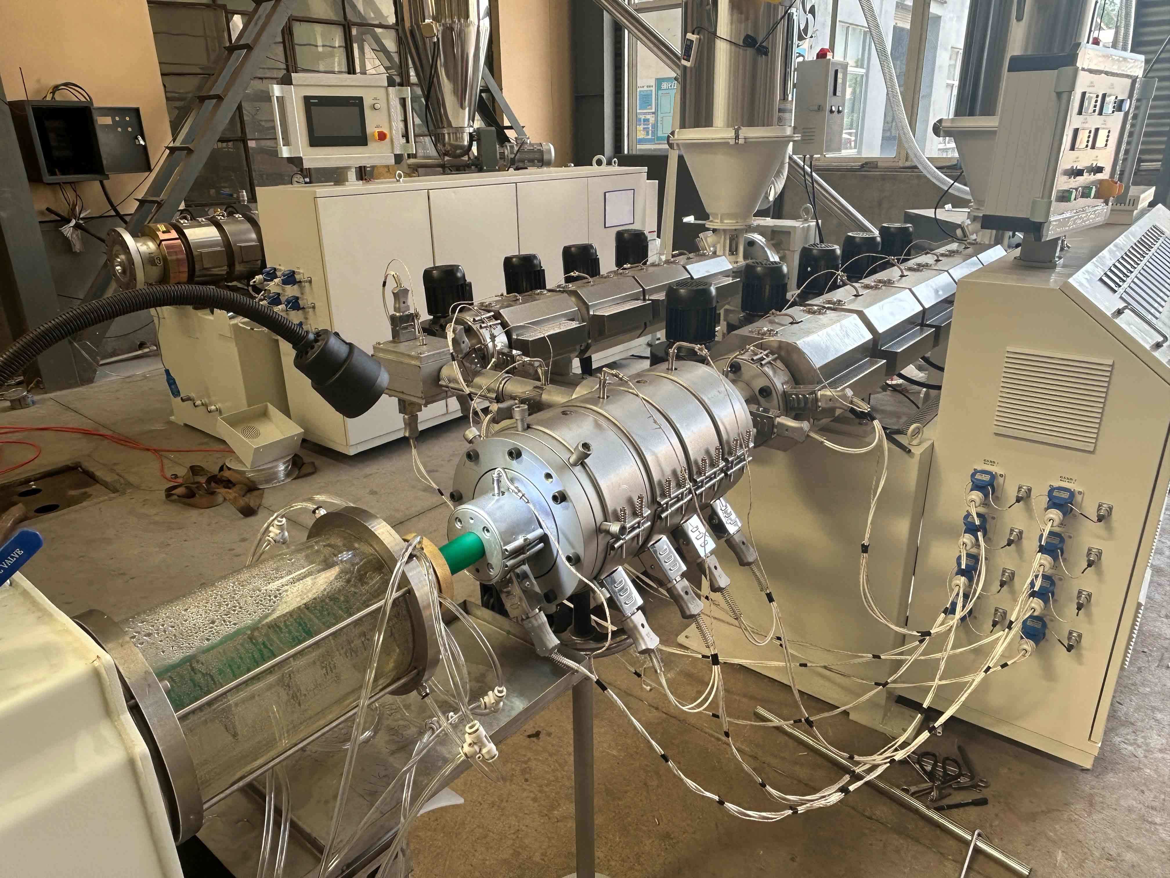 مناسب لإنتاج أنابيب PPR بأحجام مختلفة (مثل DN20-DN160)، يلبي خط الإنتاج لدينا المعايير الدولية (ISO، DIN، ASTM) ويمكن تخصيصه لتلبية متطلبات العملاء المحددة.
