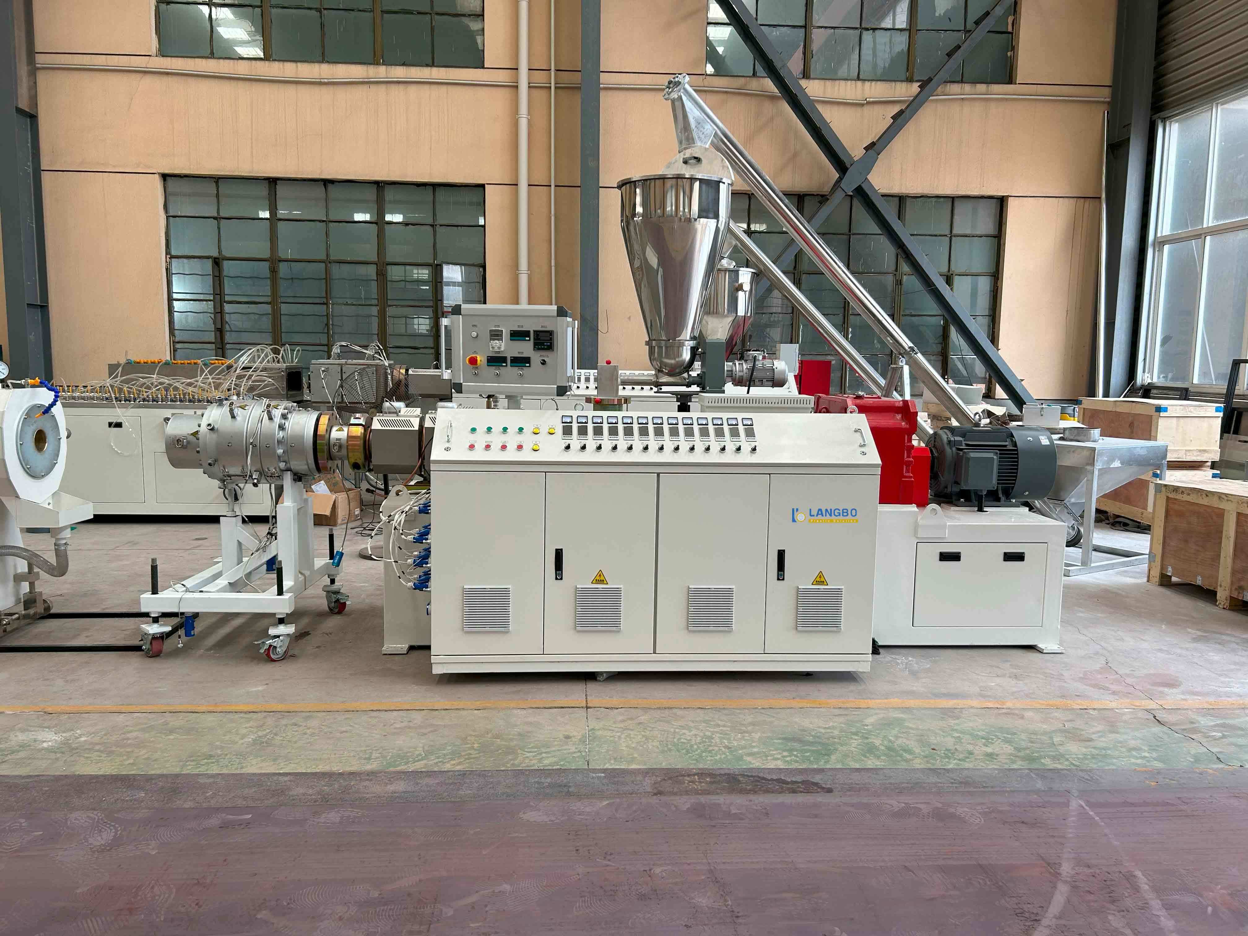 - يتم خلط راتنج PVC والمثبتات والملدنات والمواد المضافة وتغذيتها في قادوس الطارد.