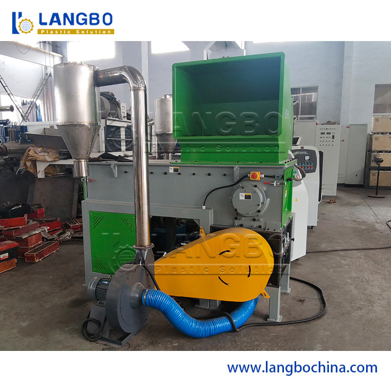 قبل أن يعمل خط بثق أنابيب HDPE بسلاسة لبثق الأنابيب ، يحتاج العمال إلى بدء تشغيل الماكينة وضبط كل التفاصيل أثناء العملية برمتها. في هذه العملية ، ستنتج العديد من كتل ذوبان البولي إيثيلين المهدرة. إنها كتل كبيرة وصلبة بما فيه الكفاية. لذلك لا يمكن التعامل معها بالكسارة ، ويمكن معالجتها فقط بواسطة المفرمة. تتميز مفرمة العمود الواحد الخاصة بنا بسرعة دوران عالية وسكاكين ذات شكل. يضع العمال كتل الذوبان المهدرة من خلال المنفذ وستسقط الجسيمات من المخرج.