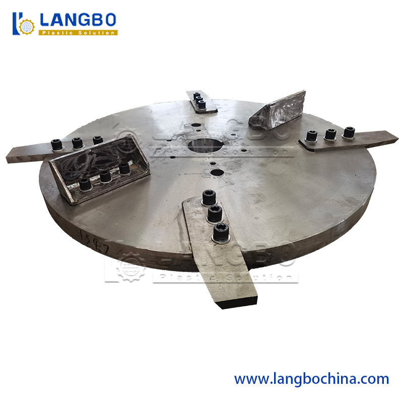 يتم إدخال نفايات البلاستيك إلى غرفة الآلة حيث تعمل شفرات دوارة عالية السرعة وشفرات ثابتة معًا لقطع المواد. القوة الطرد المركزي تقطع المواد بسرعة إلى قطع، رقائق،أو الأوراق التي تتدفق على طول جدران الغرفة أثناء خضوعها لخلط مستمر وحركة.