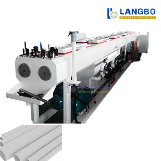 الخطوة الأولى في إنتاج الأنابيب هي تحضير المواد الخام. يمكن للعملاء خلط مسحوق PVC مع إضافات أخرى بأنفسهم. سيتم تغذية الخليط في الباثق. سيتم تلدين المادة في الباثق ثم بثقها في القالب. يتم تشكيل المادة بواسطة القالب وتخرج بشكل أنبوب. الأنبوب المبثوق من القالب يكون ساخنًا ولينًا. سيتم معايرة الأنبوب ذي الشكل غير المستقر وتبريده بواسطة كم فراغي في خزان المعايرة الفراغي. ثم يدخل الأنبوب إلى خزان التبريد لمزيد من التبريد. تقف وحدة السحب بجوار خزان التبريد وتأخذ الأنبوب بعيدًا عن الباثق. وفقًا للطول المحدد، سيتم قطع الأنبوب ثم تعبئته للنقل.